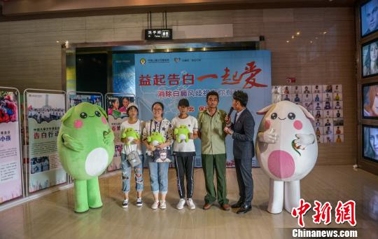 此次活动以“益起告白一起爱,消除白癜风歧视有你有我”为主题。在活动现场,当两位志愿者脱掉厚厚的玩偶服时,观众发现他们都是罹患白癜风的患者,很多观众主动走上前伸开双臂与他们拥抱,给予他们温暖和鼓励。