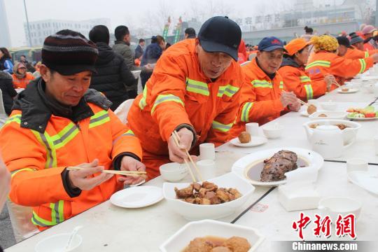(新春走基层)河北保定300名环卫工共享“元宵家宴”