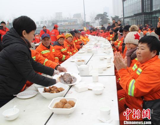 环卫工人共享“元宵家宴”。 徐巧明 摄