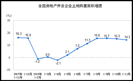 1-11月份,房地产开发企业土地购置面积25326万平方米,同比增长14.3%,增速比1-10月份回落1个百分点;土地成交价款13746亿元,增长20.2%,增速回落0.4个百分点。