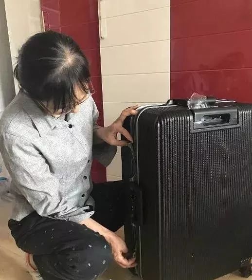 张阿姨只身一人带着大行李箱,