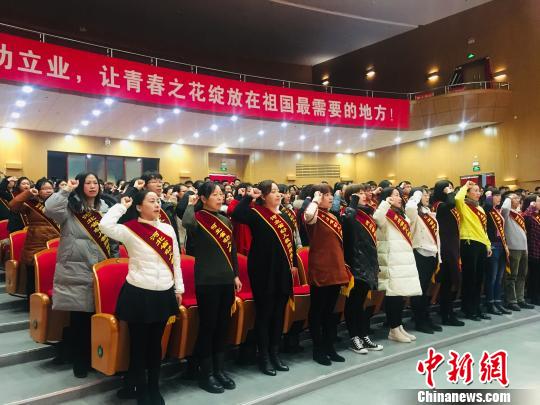 26日,河北省援疆支教教师出征动员大会在石家庄举行,203名河北援疆支教师生集体宣誓,踏上赴新疆支教征程。
