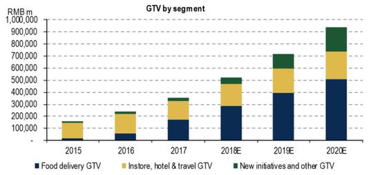 用户方面,活跃用户数量和消费频次均录得3成左右的增长。外卖日均订单量,同比增长5成。 估值方面,一向谨慎的小摩用SOTP法,对美团的3个板块分别估值,目标价为90。