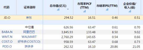 对标亚马逊的京东显然也在此之列。虽然有增速放缓和创始人丑闻的影响,但京东股价自年初高点已经下跌了6成。目前,京东的P/CF(市现率)、P/S(市销率)和EV/R(企业价值/收入)不仅大幅低于阿里和拼多多,甚至比沃尔玛和好事多这类传统零售公司还要低。