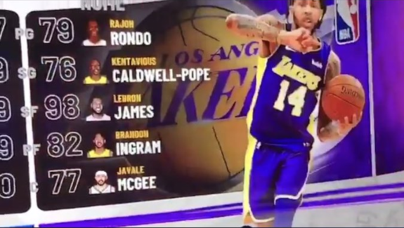北京时间8月30日,据美媒体报道,NBA2K今天举办了一场2K19的试玩派对,湖人队新赛季预计首发五虎的能力值全部曝光。有趣的是,2K19默认拉简-隆多将取代朗佐-鲍尔成为湖人队新赛季的首发控卫。